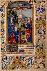Book of Hours - A very popular type of text during the Middle Ages used for private devotions. It contains a calendar as well as psalms, prayers, hymns and biblical readings for recitation during the eight canonical hours of the day, known as the Hours of the Virgin.
