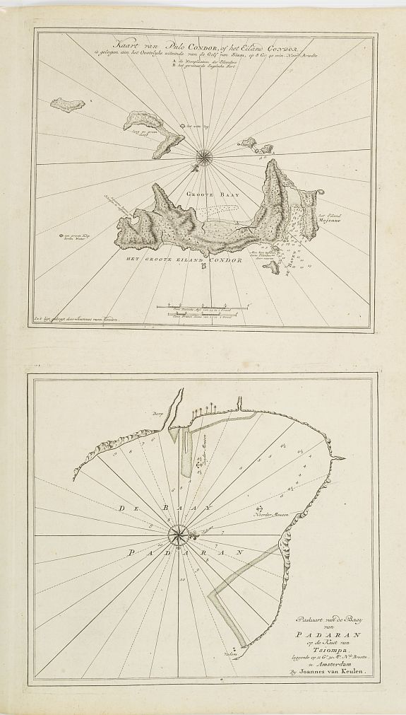 [2 charts] Kaart van Pulo Condor, of het Eiland Condor.. / Paskaart van de Baay van Padaran op de Kust van Tsiompa.. |