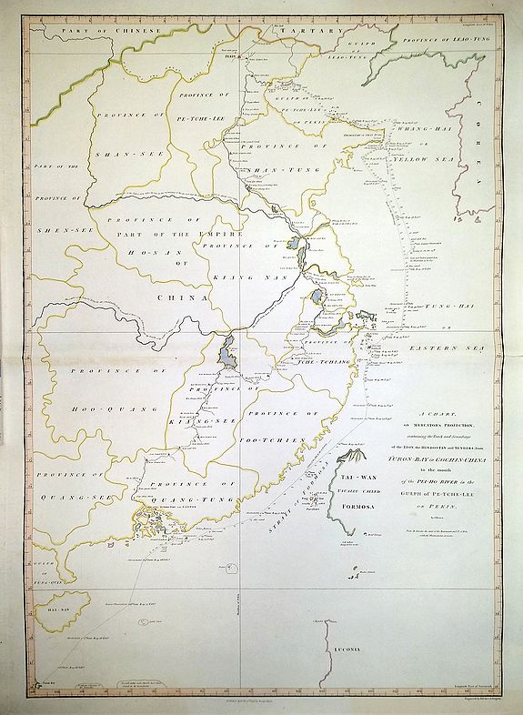 A Chart, on Mercator's Projection, Containing the Track and Soundings of the Lion, the Hindostan and Tenders, from Turon-Bay in Cochin-China. . . |