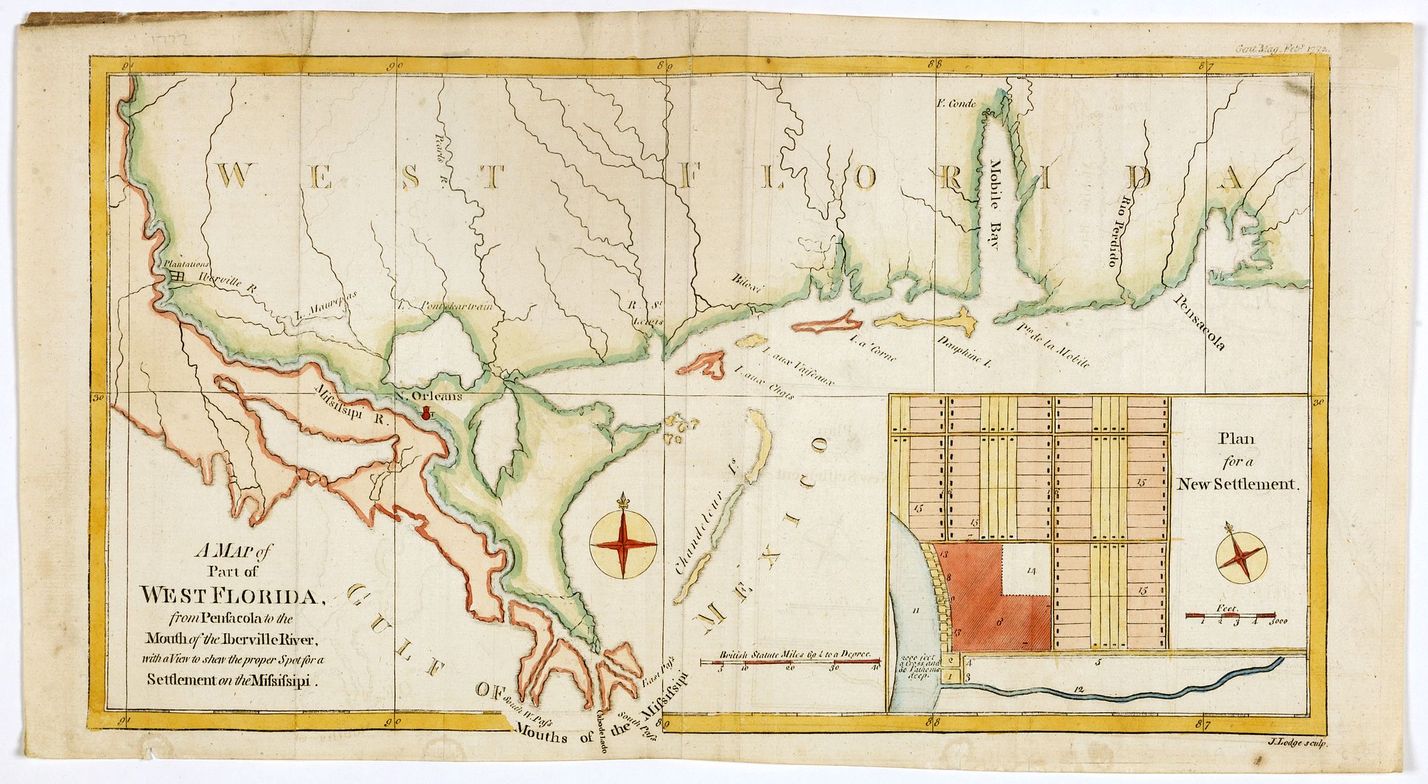A Map of Part of West Florida from Pensacola to the Mouth of the Iberville River, with a view to shew the proper spot for a Settlement on the Mississipi. |