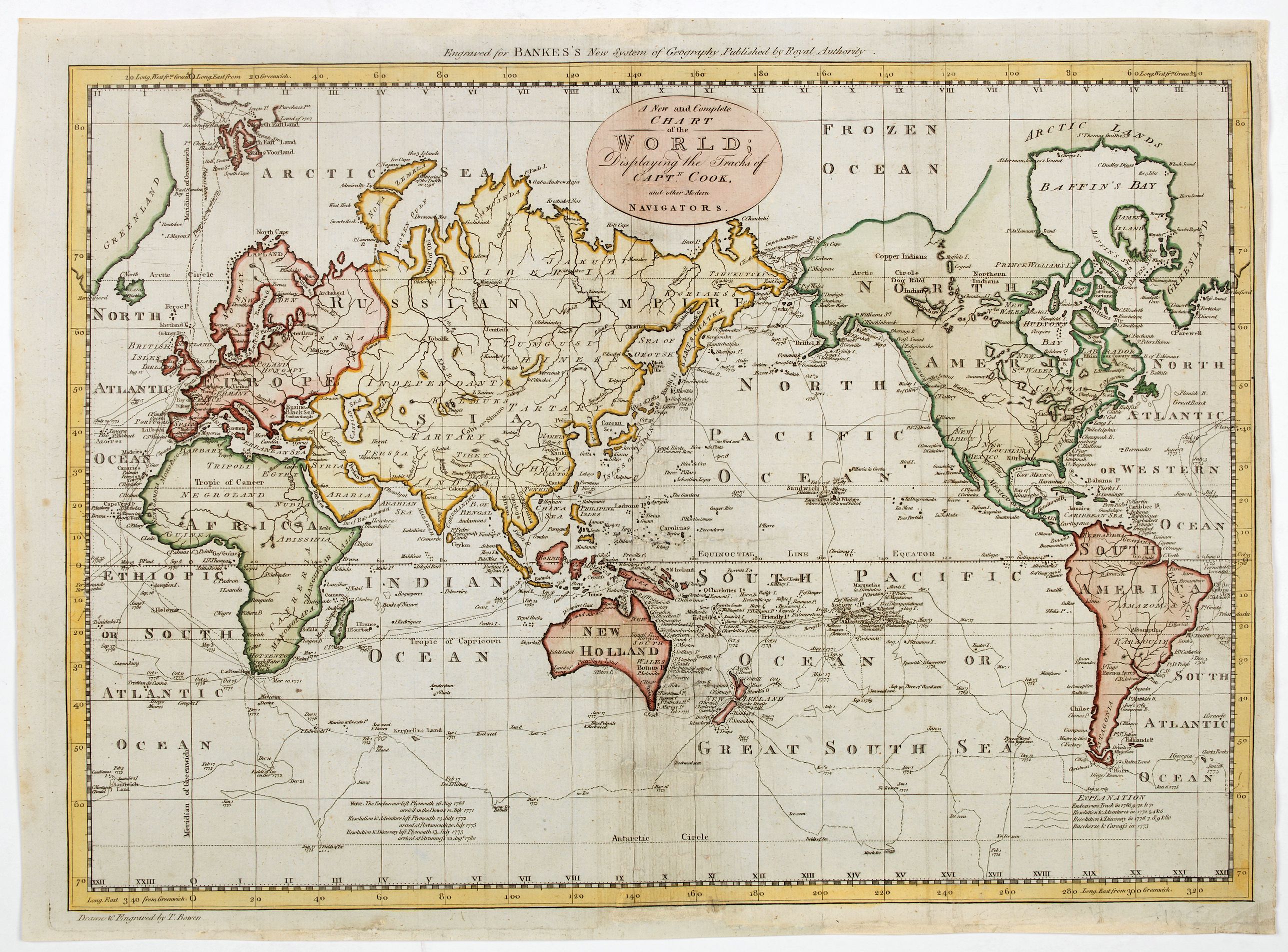 A New and Complete Chart of the World Displaying the tracks of Capt. Cook and other modern Navigators. |