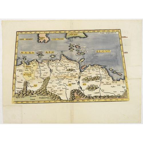 An important early map of the northern coast of Africa and including parts of the islands of Sicily and Sardine.