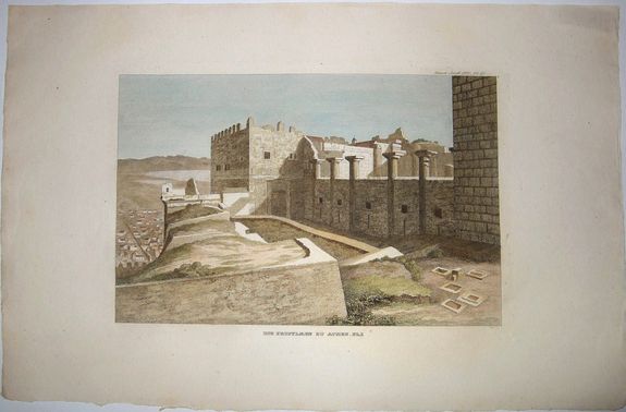 A fine copper engraved view of the 'Propylaea', Acropolis of Athens. With a partial view of the town in the background, from the rare German edition of 'The Antiquities of Athens' by Stuart and Revett, published in Darmstatt 1829/30.