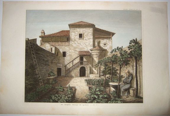 From the rare German edition of 'The Antiquities of Athens' by Stuart and Revett, published in Darmstatt 1829/30. The Choragic Monument of Lysicrates near the Acropolis of Athens was erected by the choregos Lysicrates, a wealthy patron of musical performances in the Theatre of Dionysus, to commemorate the prize in the dithyramb contest of the City Dionysia in 335/334 BCE, of which performance he was liturgist.
