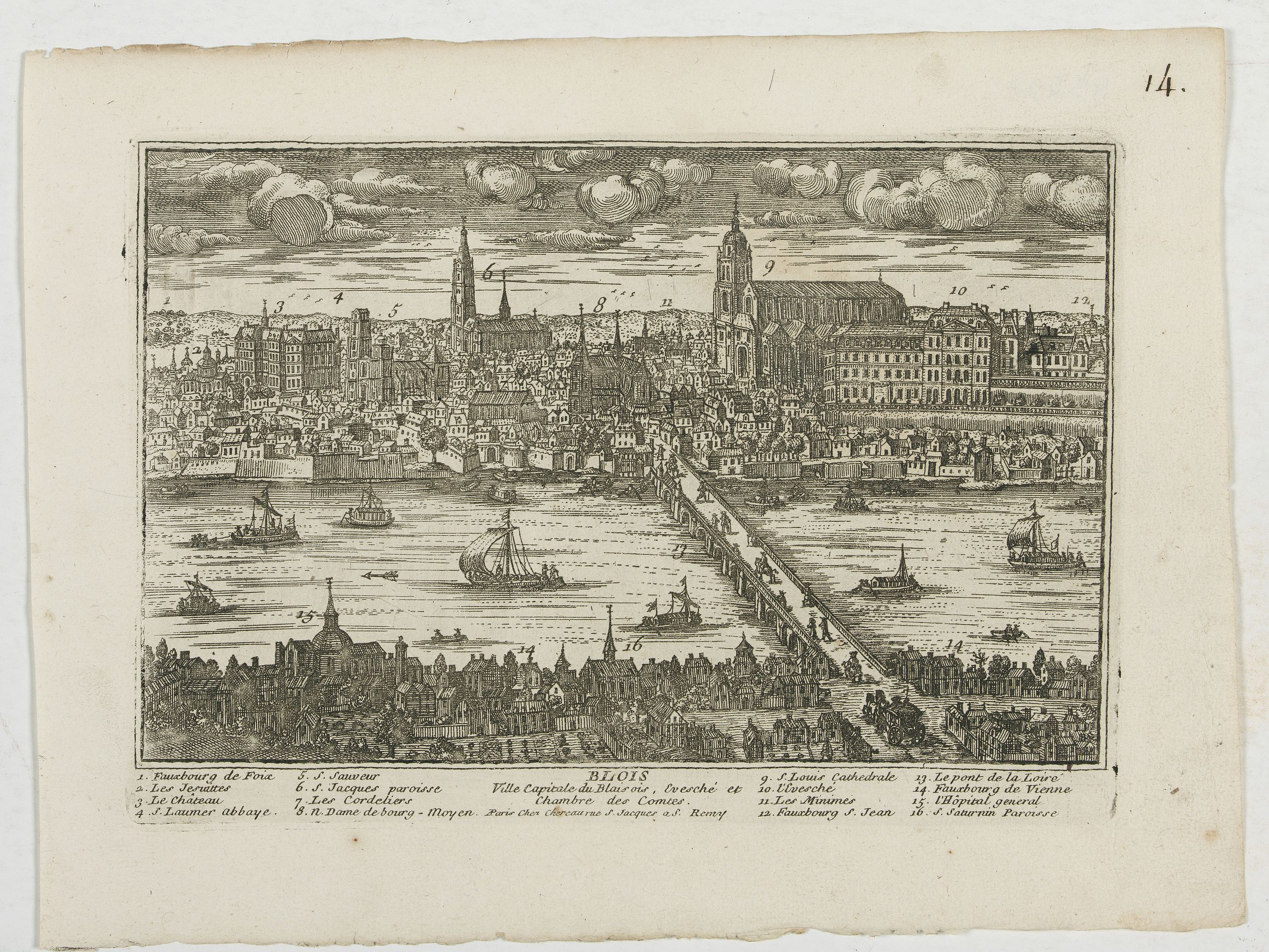 Bird-eyes view of Blois, published in Paris by Chereau who was active at rue St Jacques à S Remy.