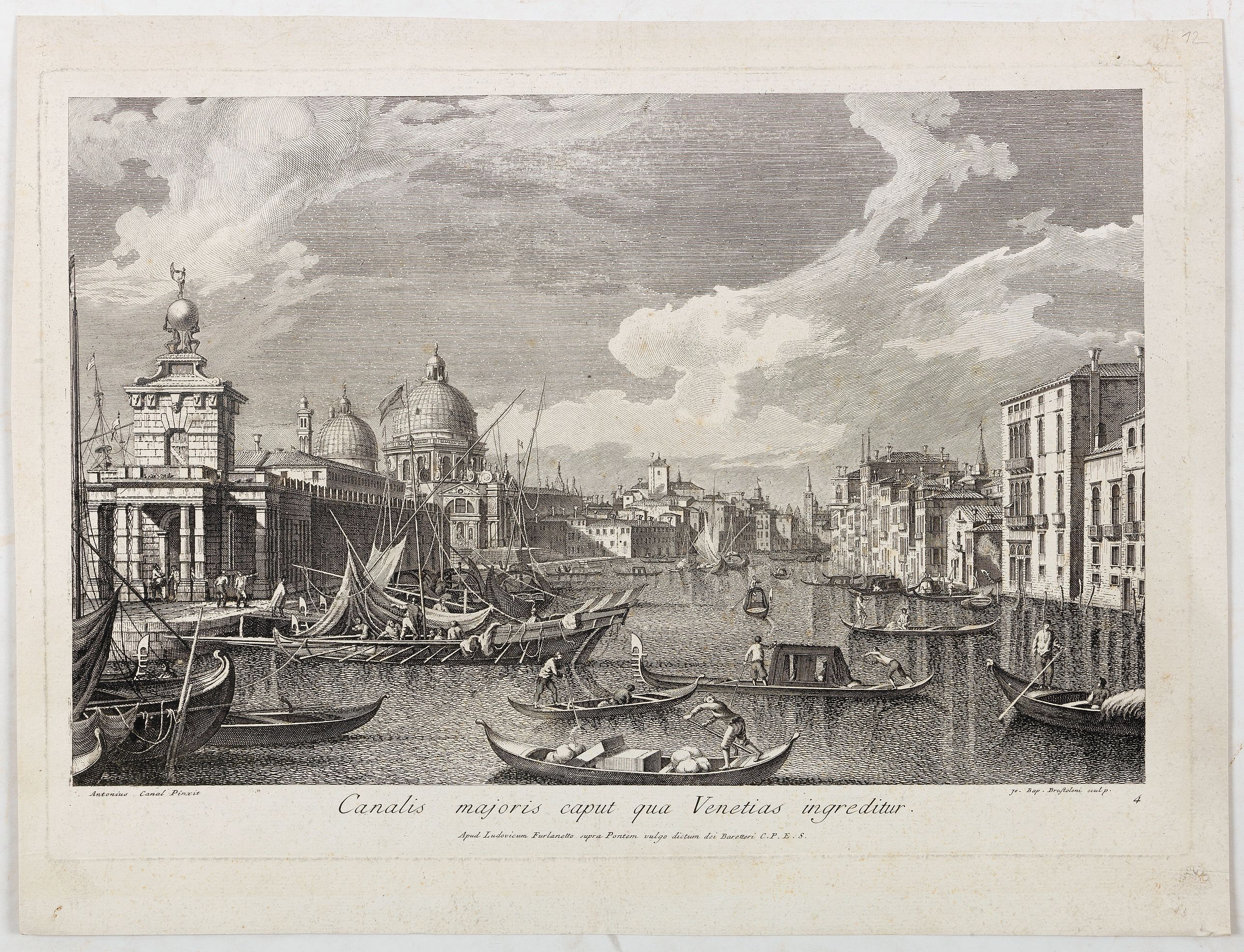 Canalis majoris caput qua Venetias ingreditur". A view of the Grand Canal with Santa Maria della Salute to the left after Canaletto.
