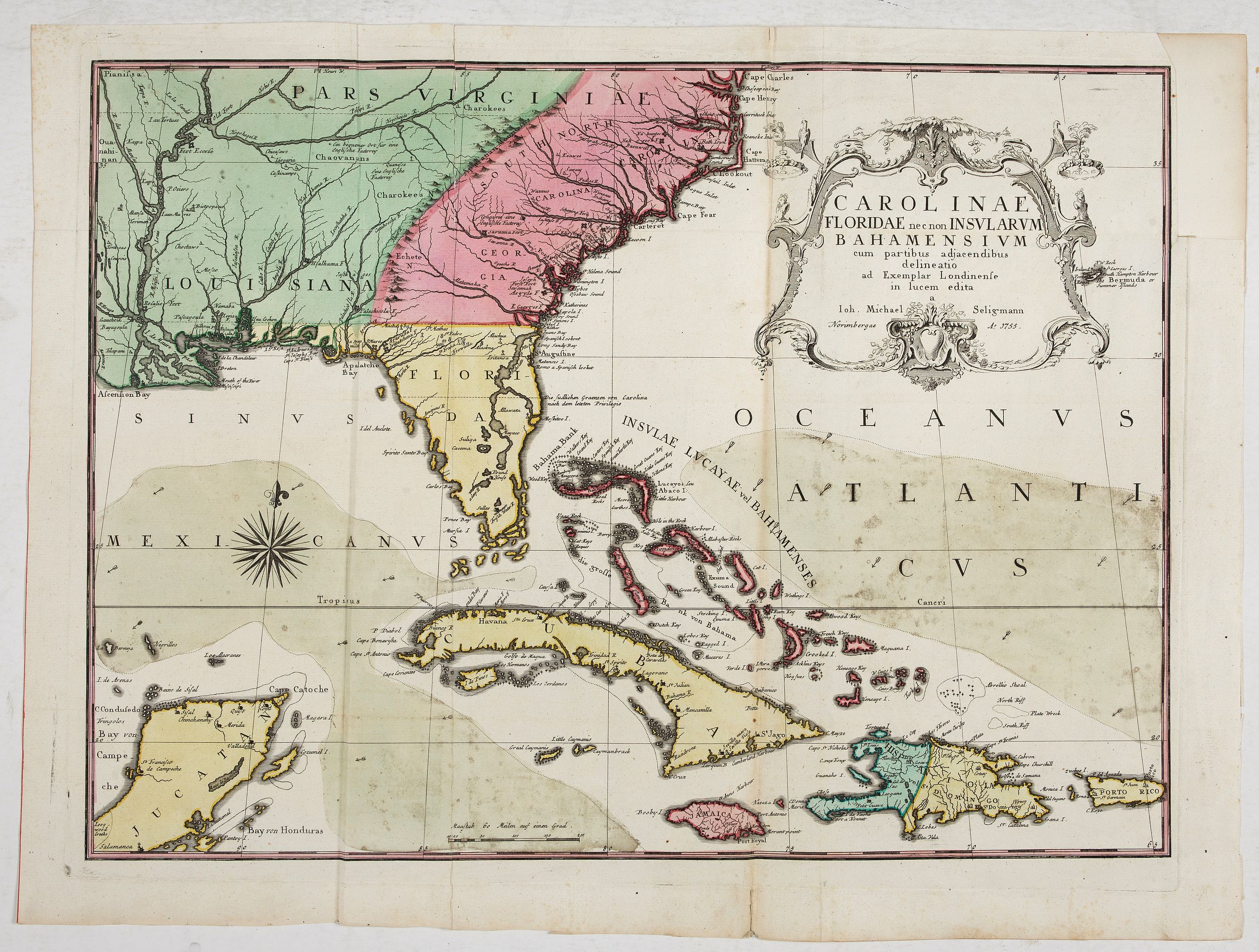 Carolinae Floridae nec non Insularum Bahamensium cum partibus adjacentibus delinatio ad Exemplar Londinense in lucem edita . . . Ao. 1755.