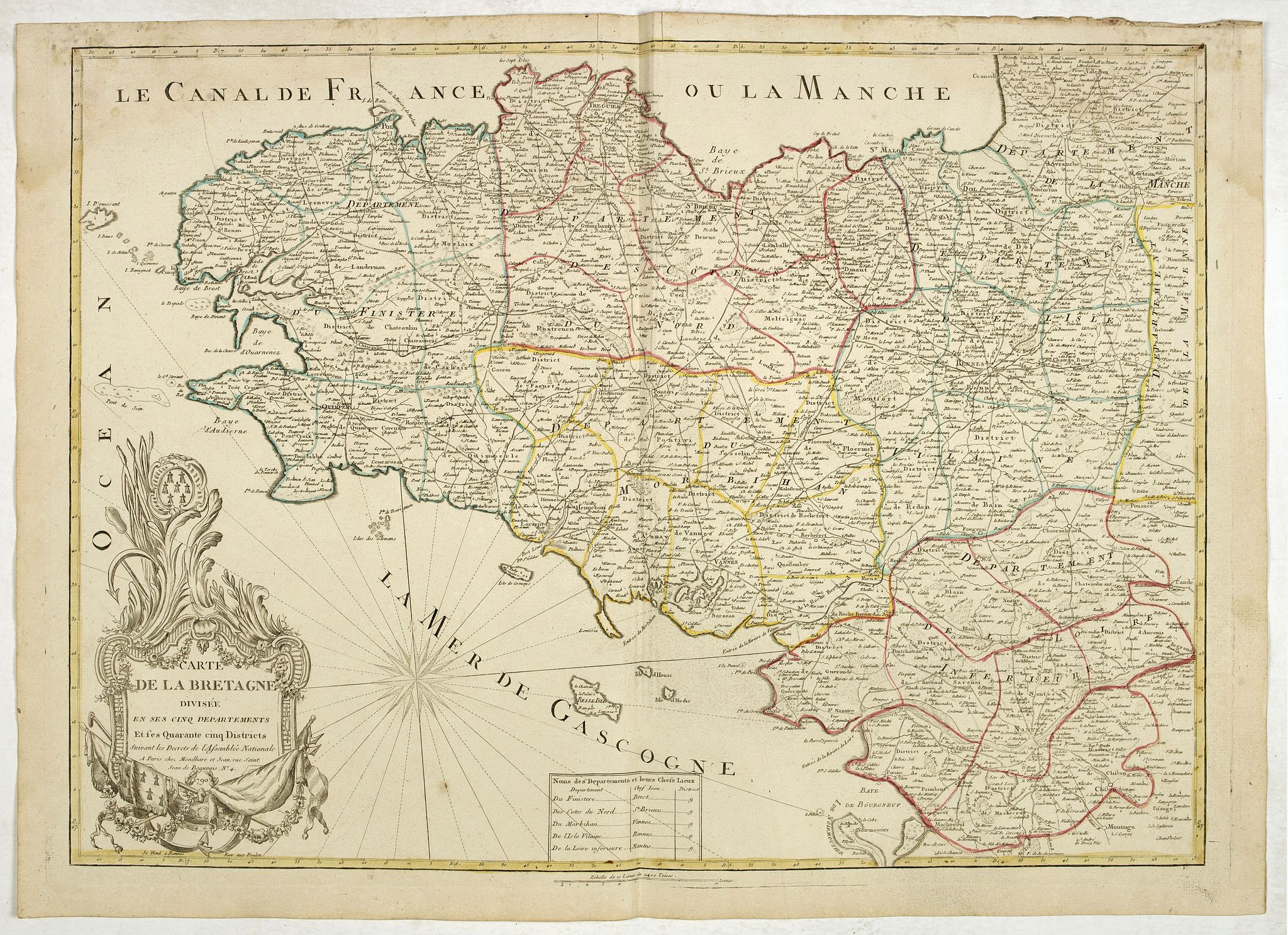 Carte de la Bretagne divisée en ses cinq departements et ses quarante cinq districts . . . |