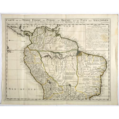 Carte de la Terre Ferme, du Perou, du Bresil, et du Pays des Amazones. . . |