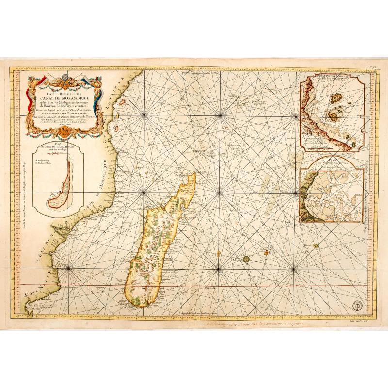 Carte réduite du canal de Mozambique et des isles de Madagascar de France de Bourbon, de Rodrigues et autres. . . |