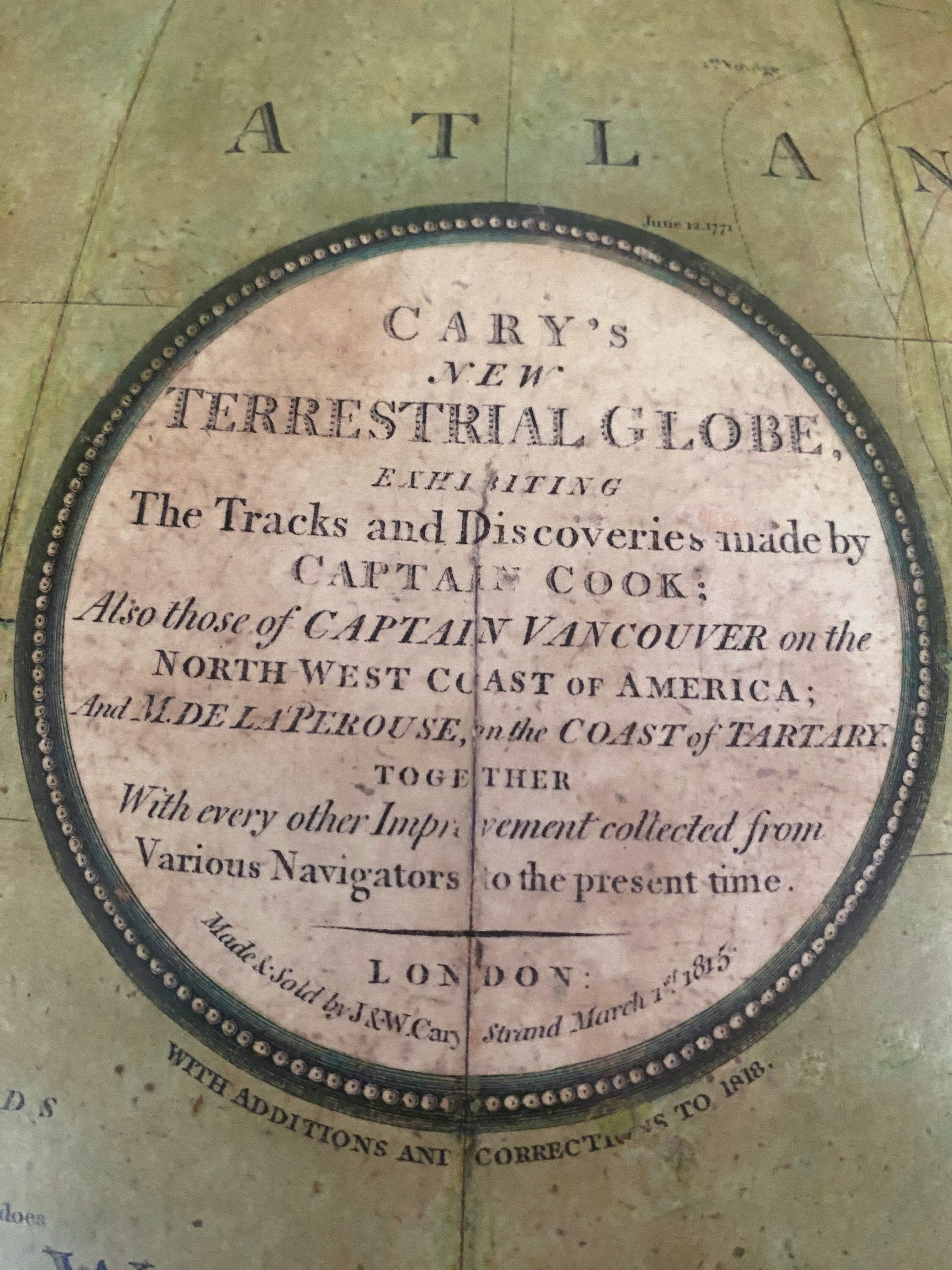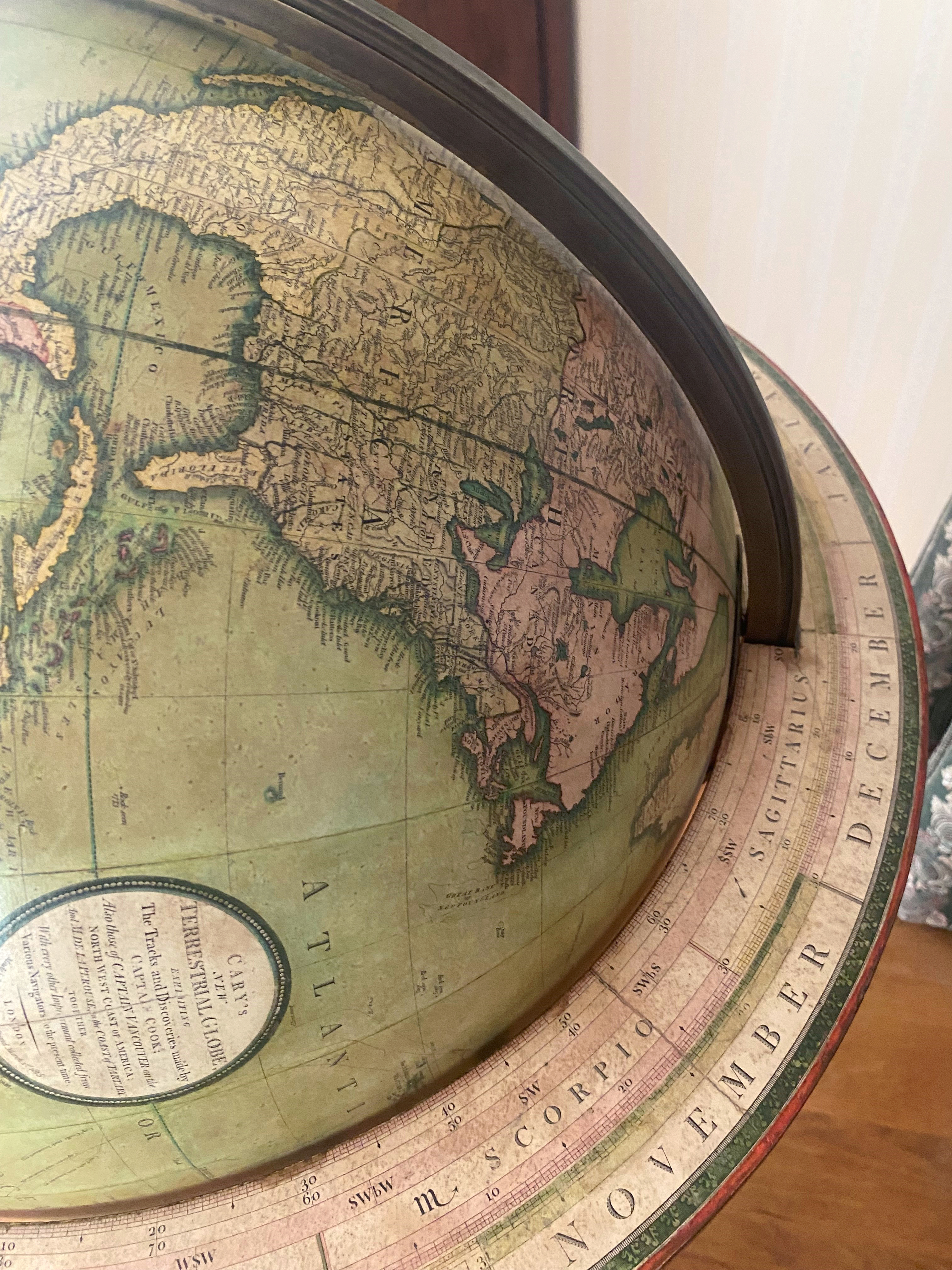 The globe is beautifully drawn with precision in a style similar to Cary's maps, lacking any ornamentation.