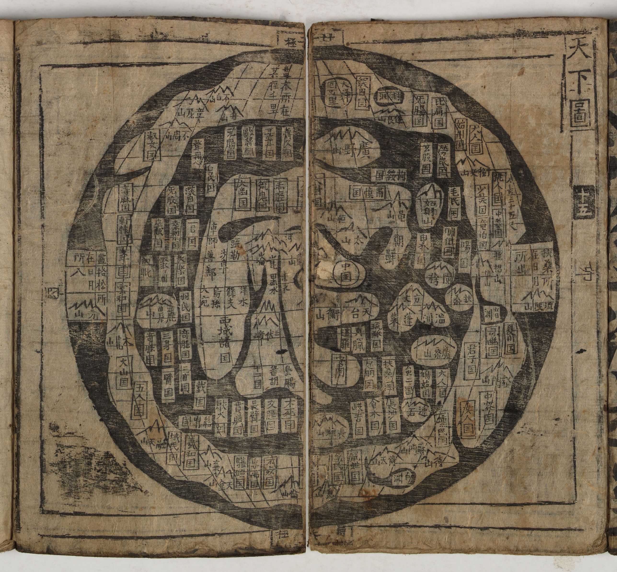 The typical contents of the traditional Korean atlases during this period consist of the following: a world map bearing the title Ch’onhado, with China, Korea, Japan and the Ryukyus at the center, surrounded by a ring of islands and other landforms that become increasingly mythological with distance from the center.