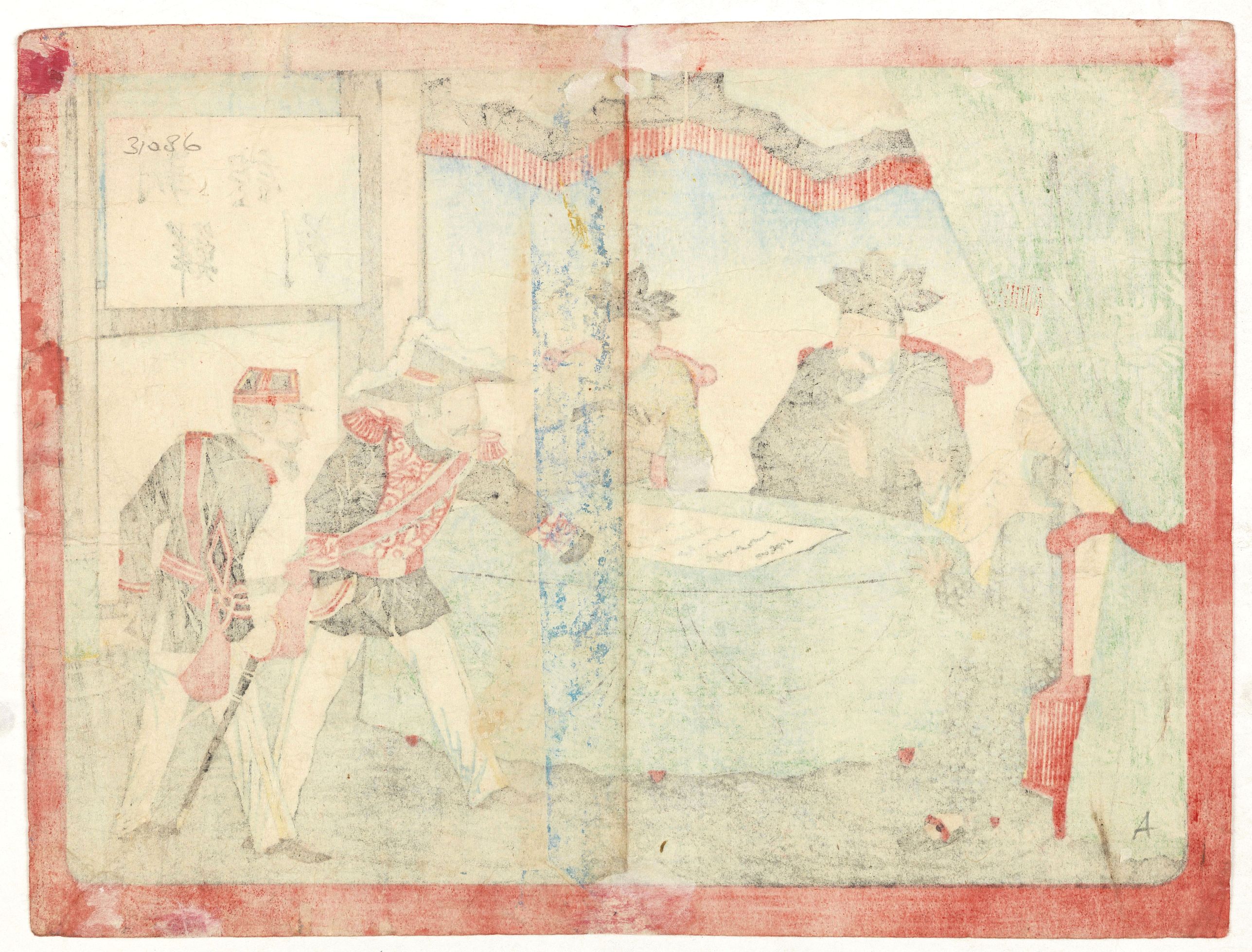 Showing Hanabusa Yoshitada's return to Korea after the Imo-incident. The Imo Incident was a revolt that took place in July 1882 by military units opposed to King Kojng's growing support for reform and modernization and to his request for Japanese military advice. It was supported by the Taewon'gun, who was strongly critical of the Shufelt Treaty signed with the United States of America on 22 May, and who used the insurrection as a means of reasserting his control at the expense of Queen Min. Hanabusa Yoshitada, the Japanese minister to Korea and his aides were forced to flee Korea. After his return to Japan Hanabusa was sent back to Korea with a military force and was the chief Japanese negotiator for the Treaty of Chemulpo, (August 1882), which permitted the permanent stationing of Japanese troops in Seoul.