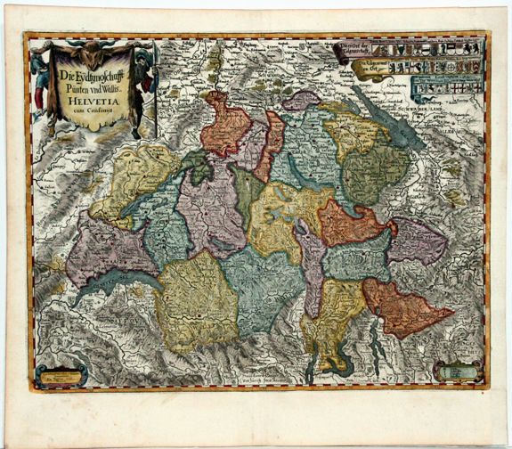 Die Eydtgnoschafft Punten und Wallis Helvetia cum Confinijs. [at bottom:] Hans Conr'd Geiger von Zurich. Fecit Anno 1637. |