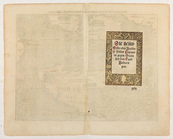 Rare, antique map of  Die neüwen Inseln/ so hinder Hispanien gegen Orient bey dem land Indie ligen.Rare, antique map of  Die neüwen Inseln/ so hinder Hispanien gegen Orient bey dem land Indie ligen.