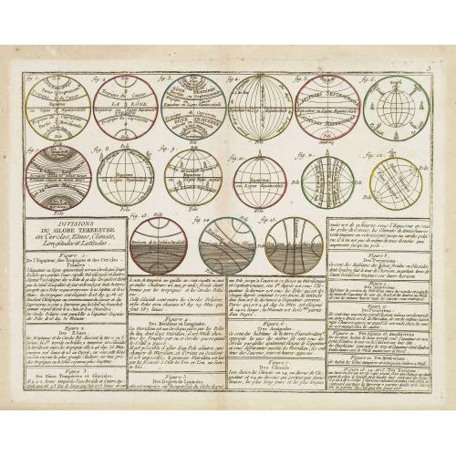 Rare, antique map of  Divisions du Globe Terrestre en Cercles, Zônes, Climats, Longitudes et Latitudes.
