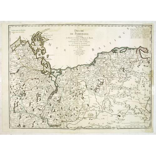 Duché de Pomeranie Contenant les Duchés de Stettin, de Wolgats, de Bardt, de Cassubie, de Vandalie, la Principauté et Isle de Rugen, le Comté de Gutzkow les Seigneuries de Louwenbroch et de Butow. . . |