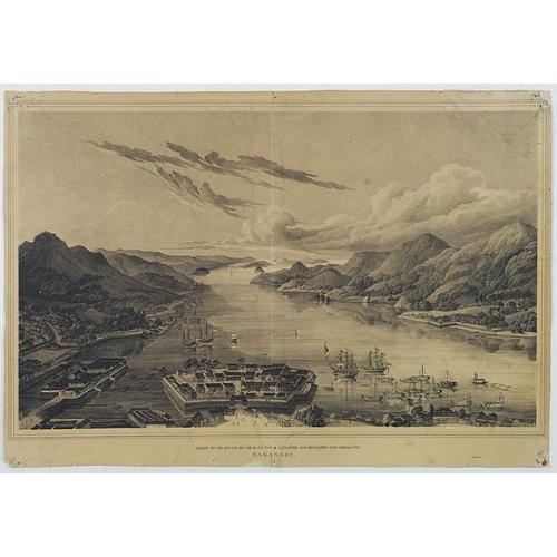 A very rare birds-eye view showing Deshima and Nagasaki bay. Von Siebold was born in Würtzburg, in Germany, and worked for the Dutch government as a doctor in Java. In J...