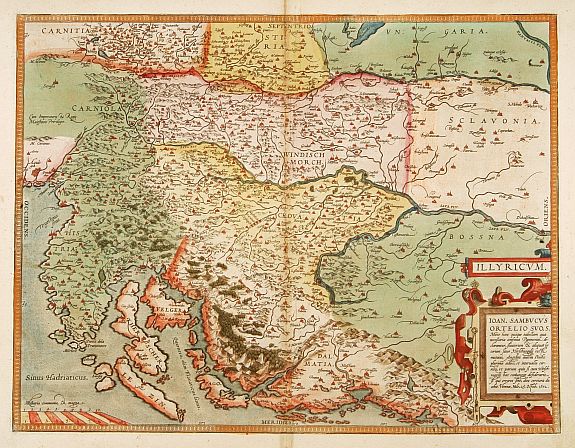 Early map of Istria and Slovenia. Prepared by Johann Sambucus 1572.