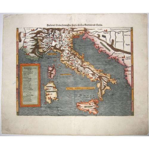 Italia mit Dreien Fuernemsten Inseln, Corsica, Sardinia, Sicilia. |