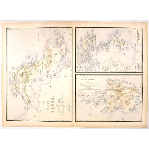 Kaart van Eiland Banka / Kaart van den Riouw en Lingga Archipels / Kaart van het Eiland Billiton. |