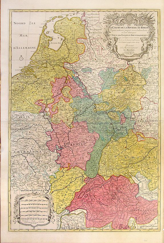 Le Cours De La Riviere Du Rhein depuis sa Source jusques a son Emboucheure ou sont distingues Tous Les Estats et Souverainetes |