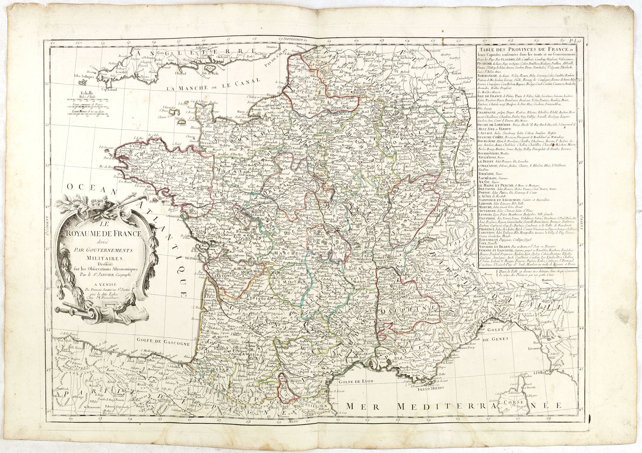 Decorative map of France with large title cartouche and a list of the "Provinces de France".