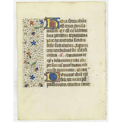 Rare, antique map of  Leaf on vellum from a manuscript Book of Hours, use of Rome.