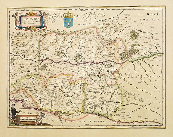 Rare, antique map of  Lionnois, Forest, Beaujolois et Masconnois.