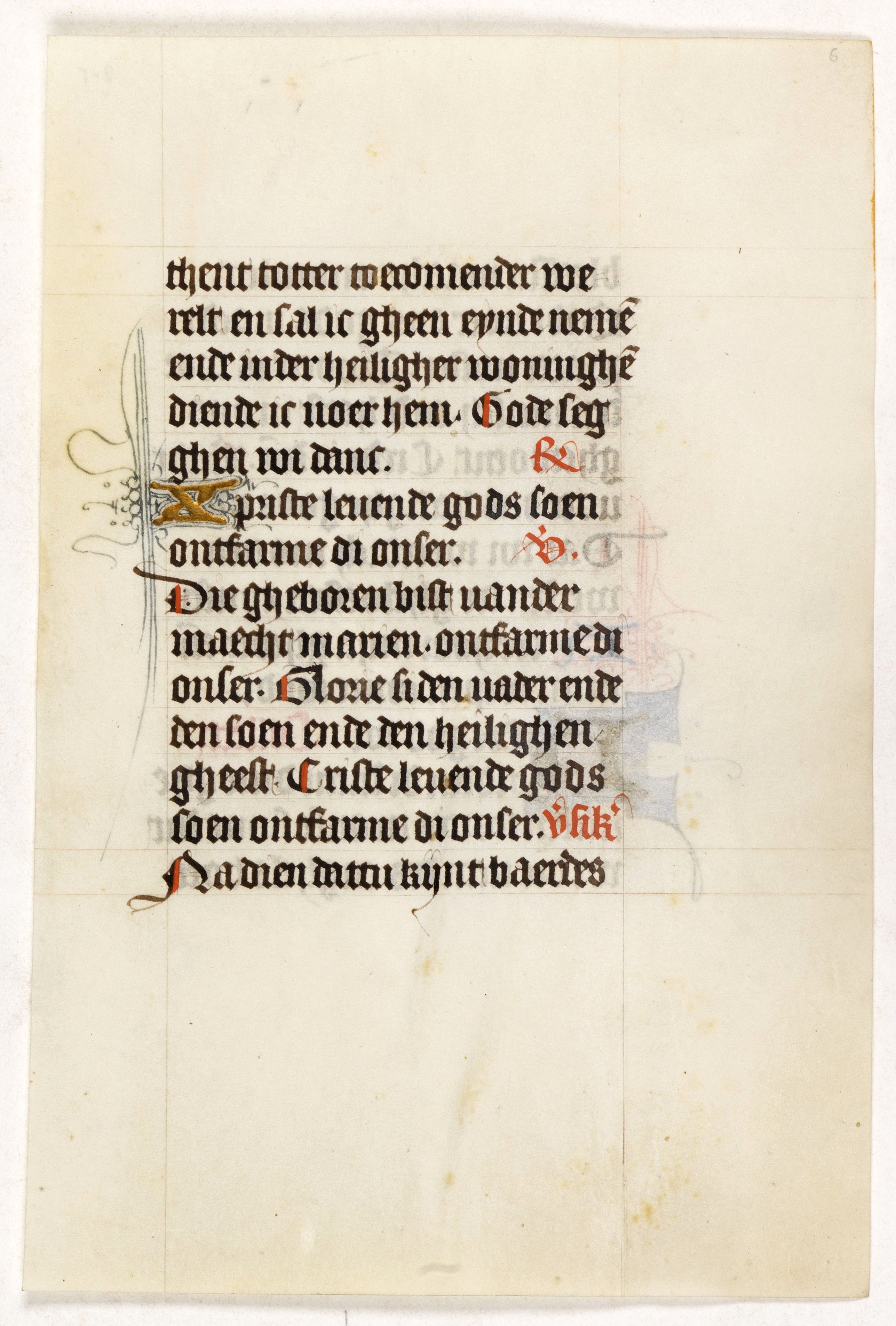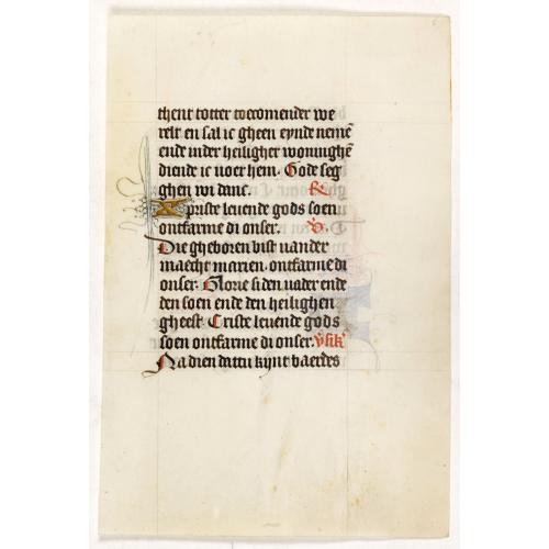 Manuscript leaf on vellum from a Dutch Book of Hours.