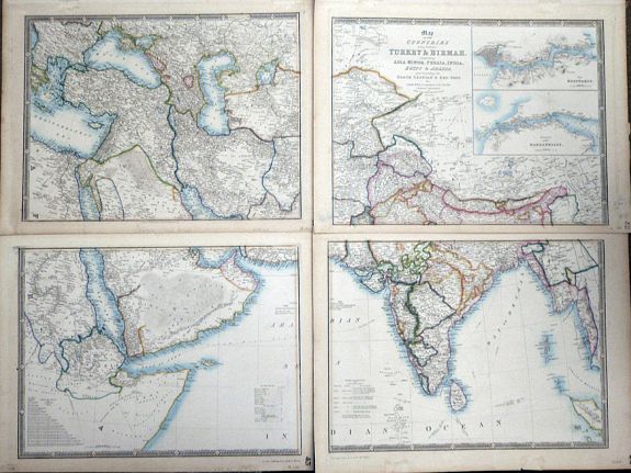Map of the Countries lying between Turkey & Birmah, comprising Asia Minor, Persia, India, Egypt & Arabia, and including the Black, Caspian & Red seas by James Wyld, Geographer to the Queen, Charing Cross East. Model of the Earth, Leicester Square, London. |