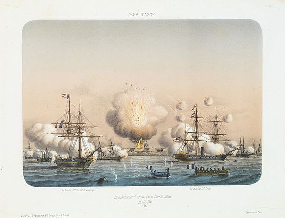 MER D'AZOF. Bombardement d'arabat par la flotille alliée 25 Mai 1855. |