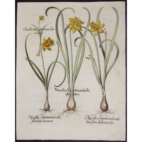 Narcissus Septentrionalis flo pleno luteo. /Narcisus Septentrionalis calice. / Narcissus Septentrionalis calice pleno. / Pseudo Narcissus minor luteus repens. |