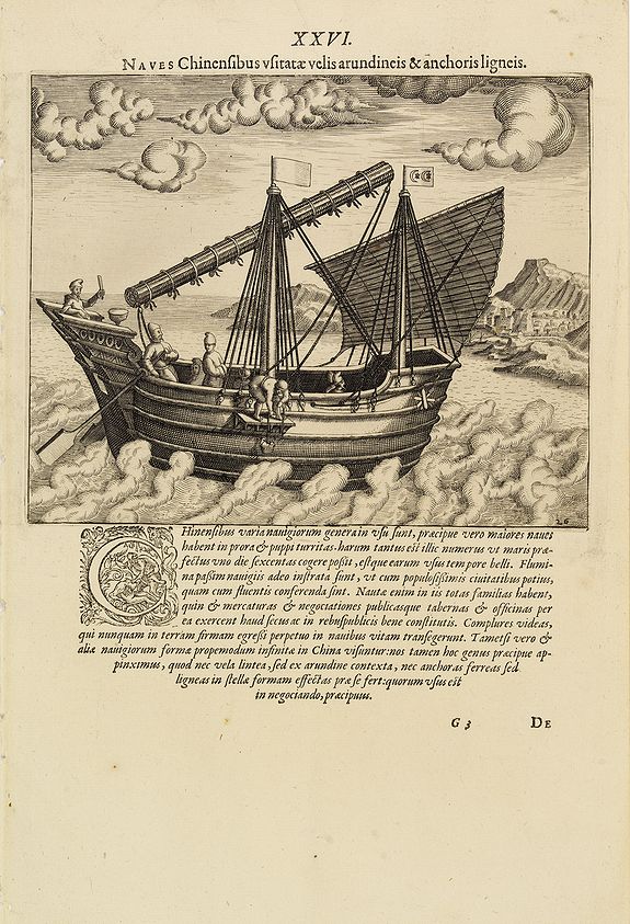 Naves Chinensibus usitatae velis arundineis & anchoris ligneis.