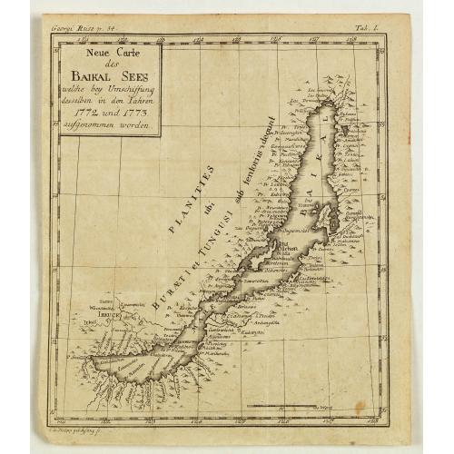 Neue Carte des Baikal Sees welche bey Umschiffung desselben in den Iahren 1773 und 1773 aufgenommen worden.