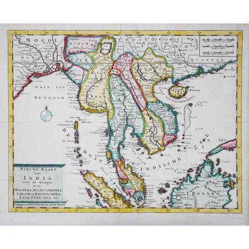 Nieuwe kaart van India over de Ganges, of van Malakka, Siam, Cambodia, Chiampa, Kochinchina, Laos, Pegu, Ava, enz. |