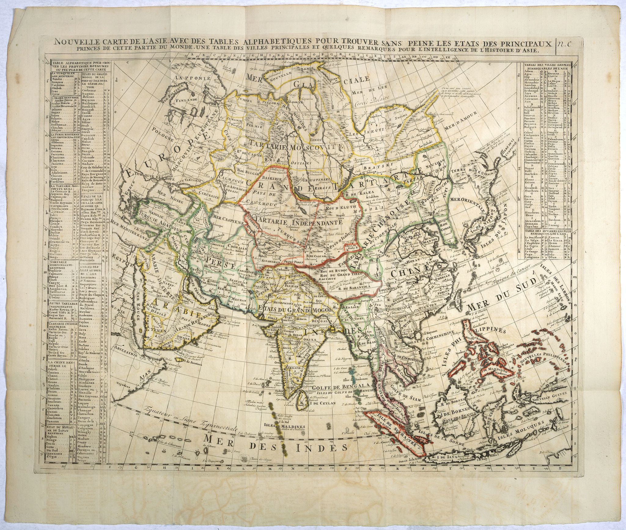 Nouvelle Carte De L'Asie Avec Des Tables Alphabetiques Pour Trouver Sans Peine Les Etats Des Principaux Princes De Cette Partie Du Monde . . . |