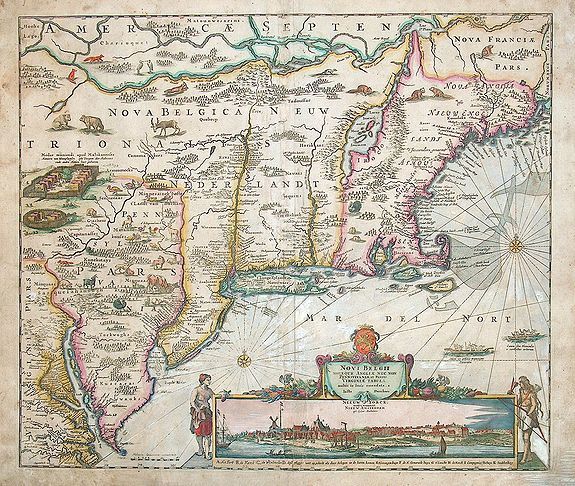 Novi Belgii novaeque Angliae nec non partis Virginiae tabula multis in locis emendata a Iusto Dackers. |