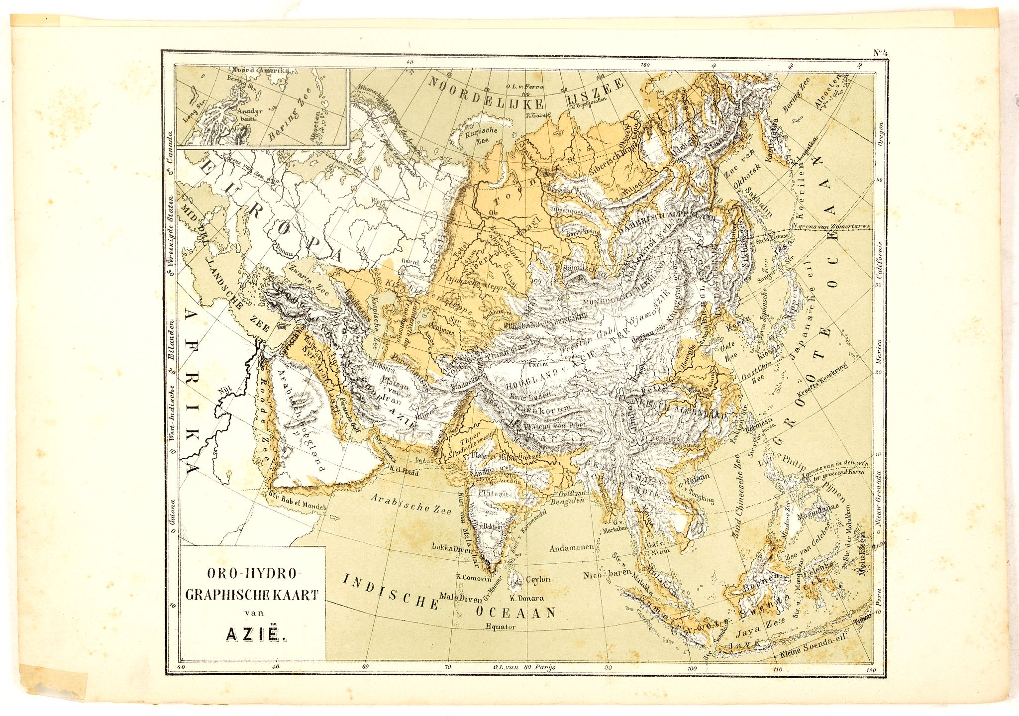 Rare, antique map of  Oro-Hydrographische Kaart van Azië.