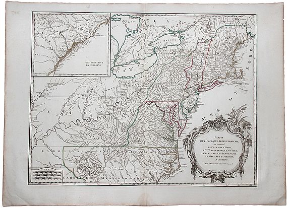Partie de l'Amerique Septentrionale qui comprend Le Cours de l'Ohio, La Nlle Angleterre, la Nlle York, le New Jersey, La Pensylvanie, le Maryland La Virginie, La Caroline |