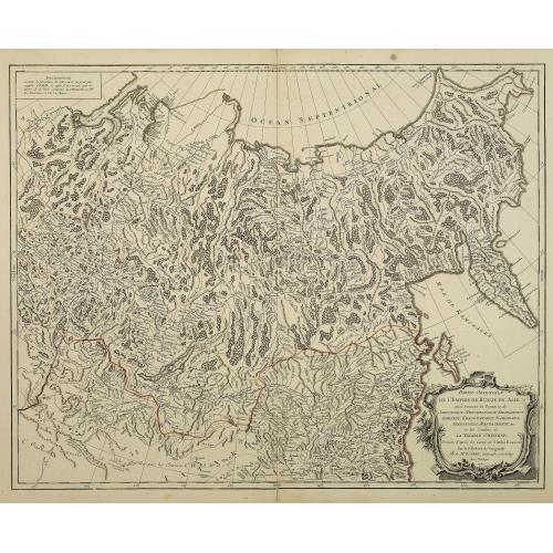 Partie Orientale De L'Empire De Russie En Asie, ou trouvent les Provinces de Jakuckskoy, Kransnojarskoy, Selinginskoy, Ilimskoy, Krasnojarskoy, Narimskoy, Jenisseiskoy, Mangajeiskoy, & c. et les Confins de la Tatarie Chinoise. . . .1750
