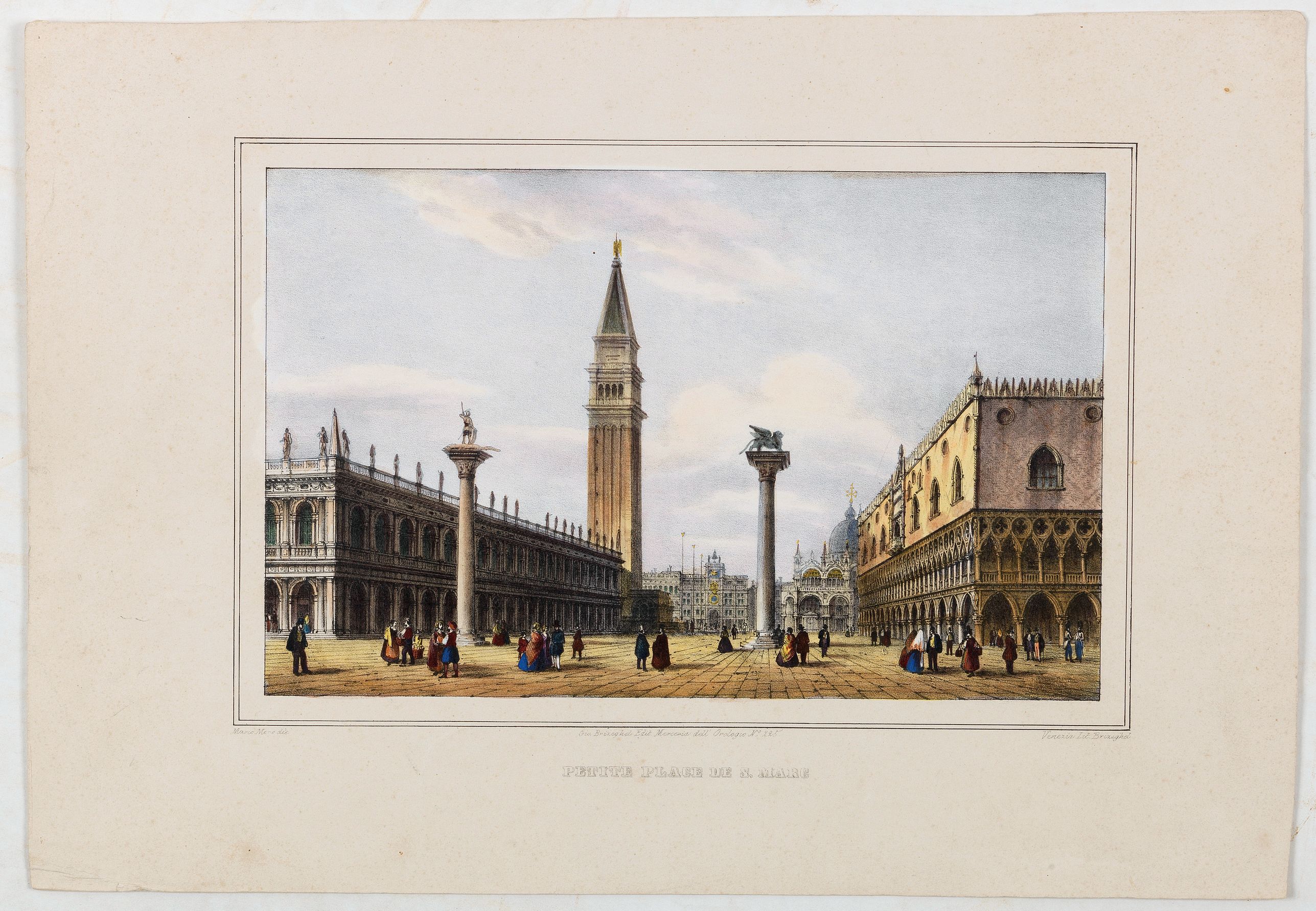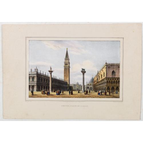 View of St Mark’s Square, lithographed in Venice by G. Brizeghel, published here with French captions in "Album delle principali vedute di Venezia". In original colours with partial albumen highlighting.