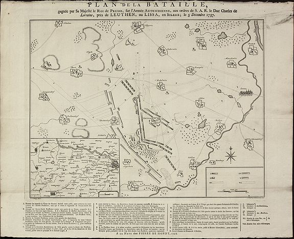 Plan de la Bataille, gagnée par Sa Majesté le Roi de Prusse, sur l'Armée Autrichienne, aux ordres de S.A.R de Duc Charles de Lorraine, près de Leuthen, ou Lissa, en Silesie, le 5. Decembre 1757 |
