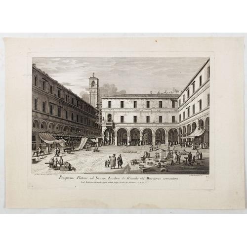 Rare, antique map of  Prospectus Plateae ad Divum Iacobum de Rivoalto ubi Mercatores conveniunt.
