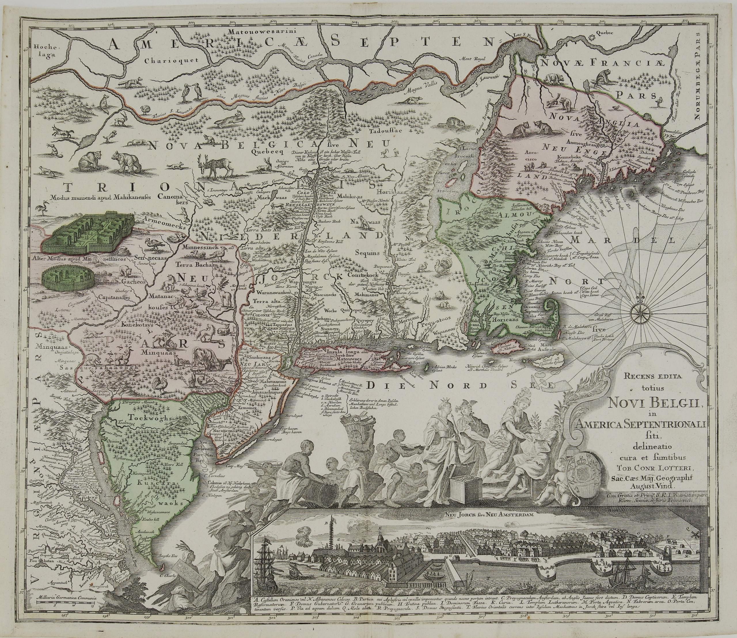 Recens Edita totius Novi Belgii, in America Septentrionali siti, delineatio cura et sumtibus Tob. Conr. Lotteri, Sac. Caes. Maj. Geographi August. Vind. |