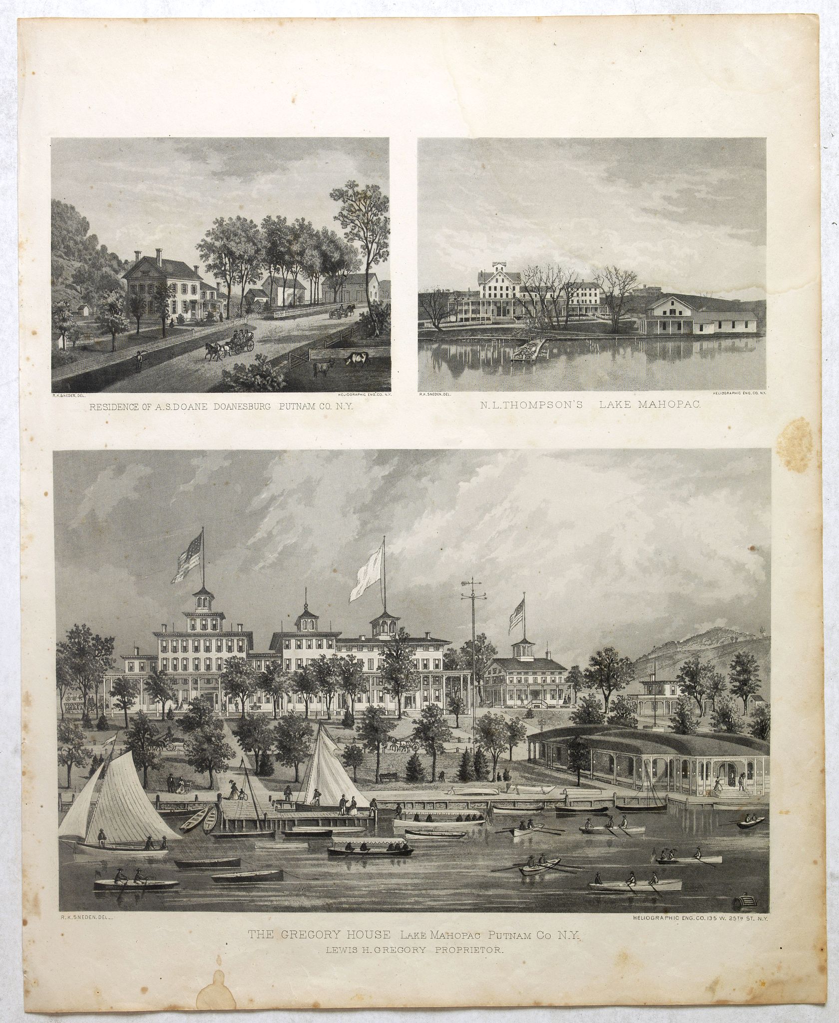 Residence of A.S. Doane Doanesburg Putnam Co. N.Y. - N. L. Thompsons's lake Mahopac - The Gregory House lake Mahopac Putnam Co N. Y. Lewis H. Gregory Proprietor.
