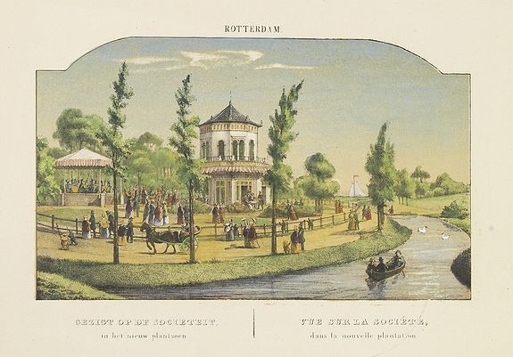 Rare, antique map of  ROTTERDAM Gezigt op de Societeit in het nieuwe. . .