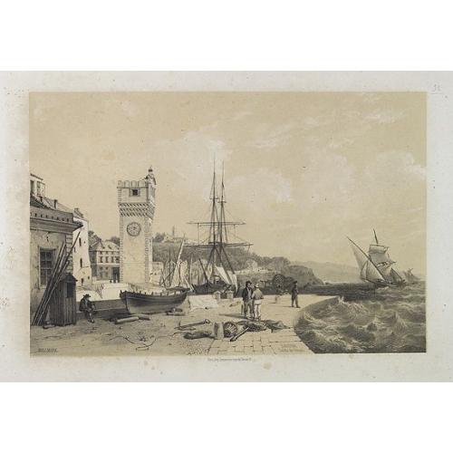 Uncommon and picturesque view of Sanova in the northern Italian region of Liguria in the Riviera di Ponente on the Mediterranean Sea. Published by Carl Johan Billmark and printed by Lemercier in Paris, 55 rue de Seine, the leading firm in Europe at that time.