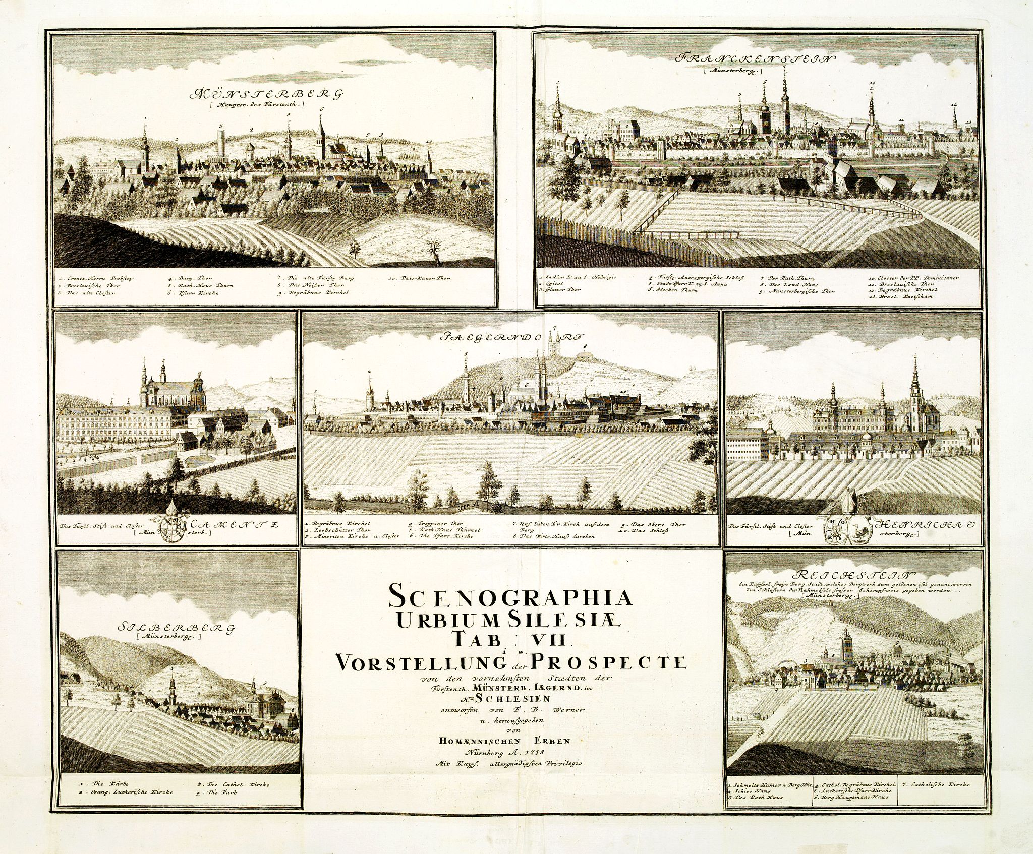 Scenographia Urbium Silesiae, Tab VII. / Vorstellung der Prospecte . . . Munsterb Jaegerend . . . |