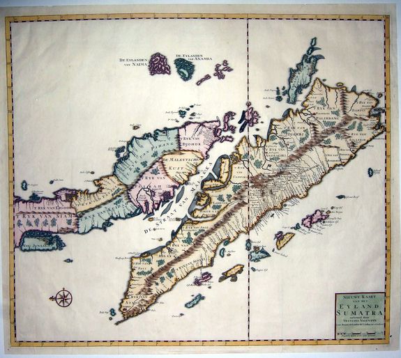 Valentijn's map is one of the first published to present a sophisticated treatment of Malays and Sumatra, and the model upon which most subsequent maps through the late 18th century were based. This is one of the earliest maps to expound upon the indigenous polities of Malaya.